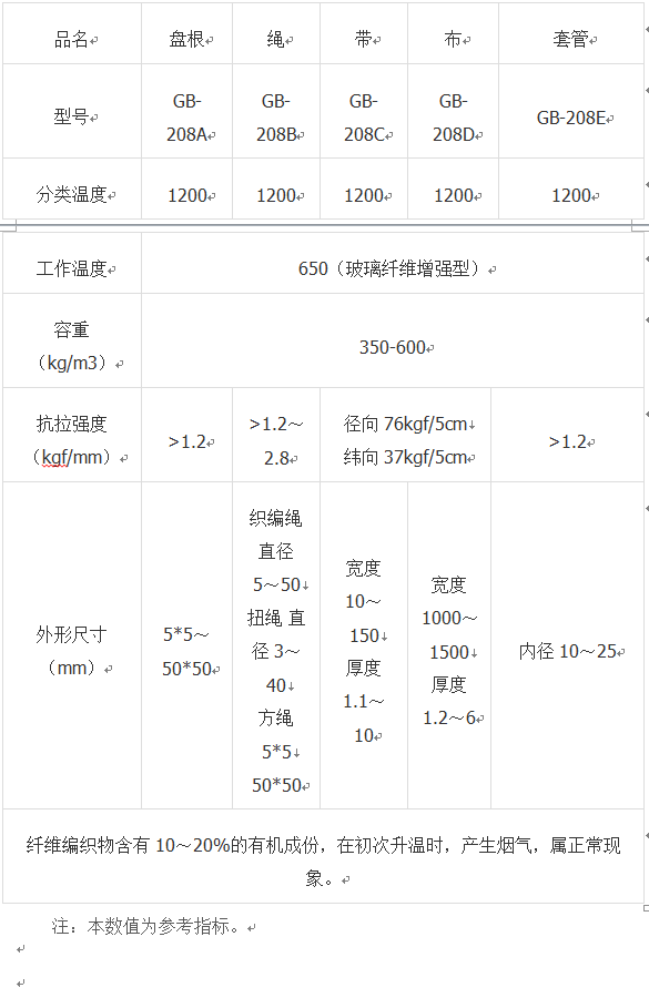 產(chǎn)品簡(jiǎn)介: 陶瓷耐火纖維編織品是以陶瓷耐火纖維為原料,加入適量玻璃纖維或耐火合金絲等不同的增強(qiáng)材料,經(jīng)過(guò)編織工藝制成的編織品。 產(chǎn)品特性: 耐高溫、低熱容、導(dǎo)熱系數(shù)低、抗熱震; 具有抗熔鋁、鋅等有色金屬侵蝕能力; 優(yōu)良的高溫絕緣性能、使用壽命長(zhǎng); 無(wú)毒、無(wú)害,對(duì)環(huán)境無(wú)不良影響; 施工安裝方便。 應(yīng)用范圍: 各種窯爐、高溫管道及容器隔熱保溫; 冶金、玻璃航天、建材、船舶行業(yè)的隔熱層、隔熱墊; 電子、化工、汽車(chē)、建材行業(yè)的防火簾、消音器材; 爐門(mén)、閥門(mén)、法蘭密封、防火門(mén)及防火卷簾材料; 高溫爐門(mén)幕簾。 主要技術(shù)性能指標(biāo):